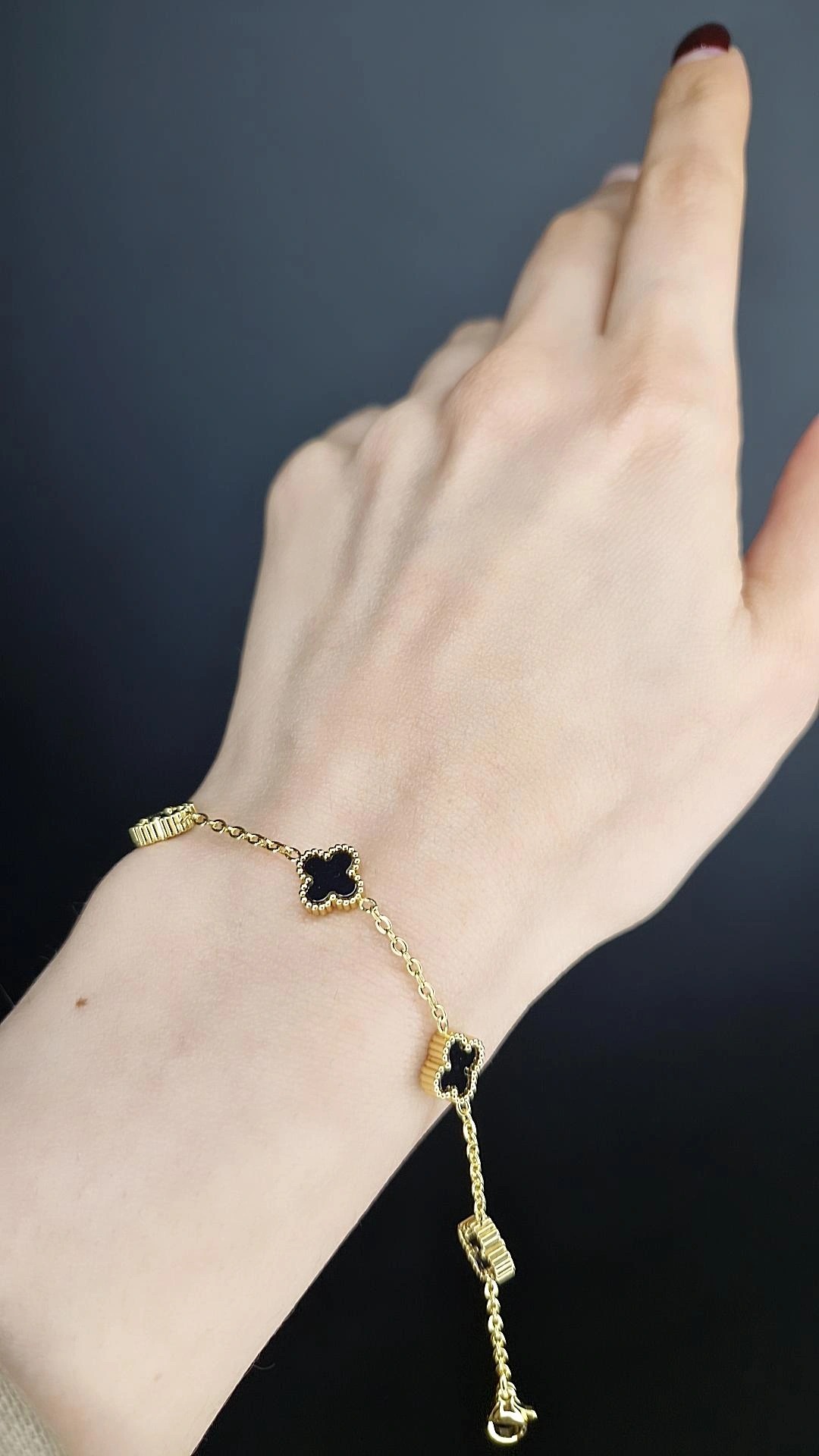 Van Cleef Inspired Stainless Steel Jewelry Set – Golden Four-Leaf Design