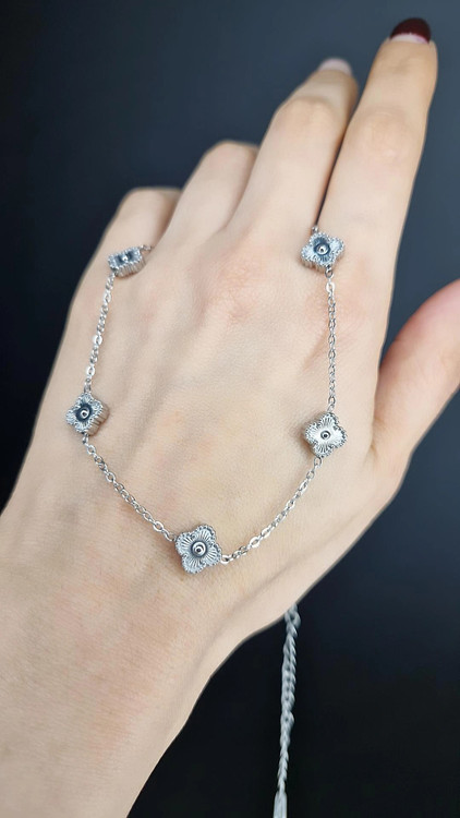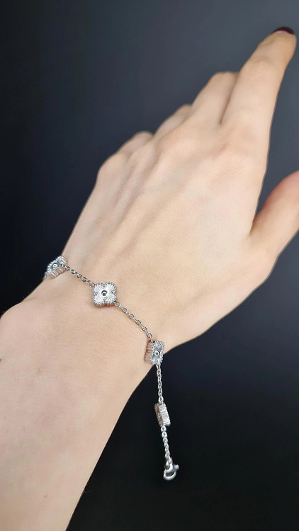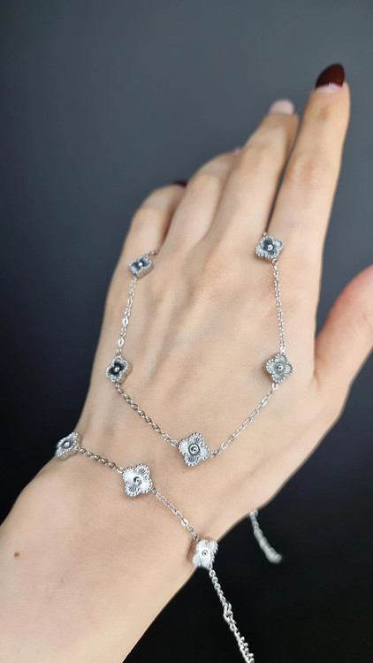 Van Cleef Inspired Silver Stainless Steel Jewelry Set
