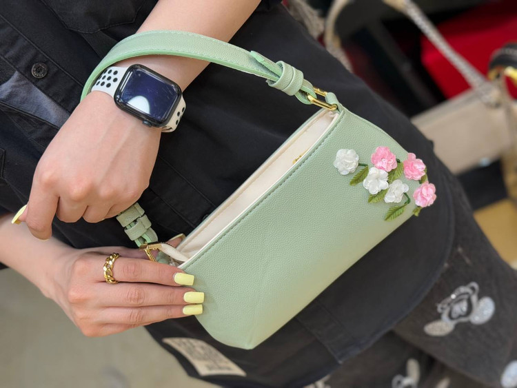 کیف زنانه مدل گل برجسته سبز پاستلی، ترکیب زیبایی از لطافت رنگ و طراحی دخترانه است.