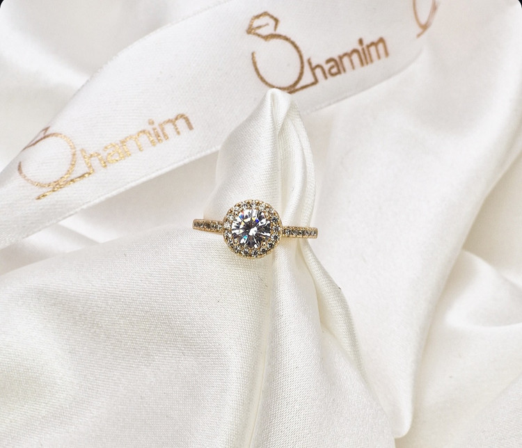 انگشتر ژوپینگ زنانه؛ تک نگین گرد درشت با رکاب ساده و براق (سبک سولیتیر کلاسیک)