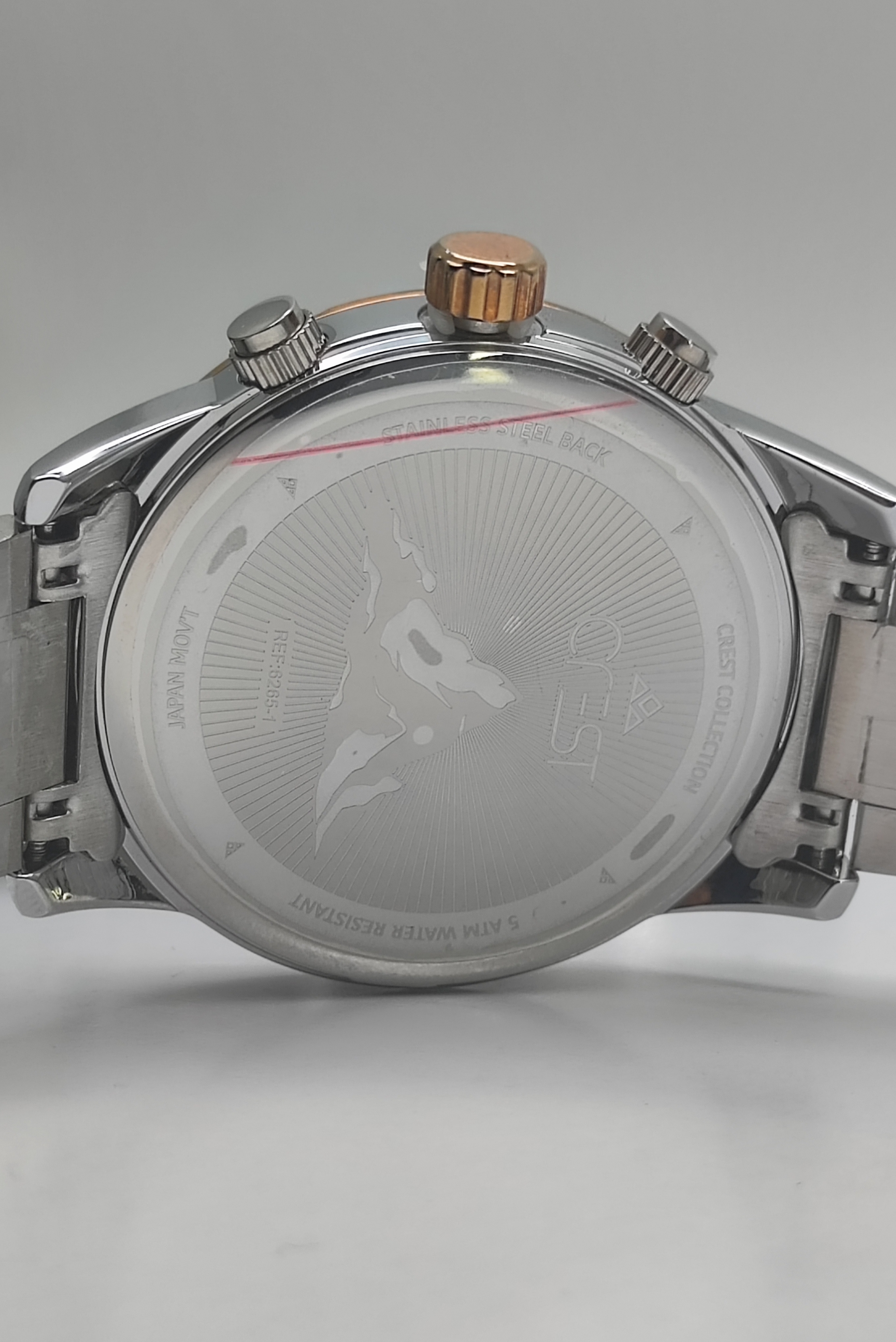ساعت اورجینال CREST-6265-1 هر سه موتور فعال ضمانت دوساله موتور ضمانت سه ساله باتری ساعت استیل همراه با فاکتور معتبر مقاوم به آب
