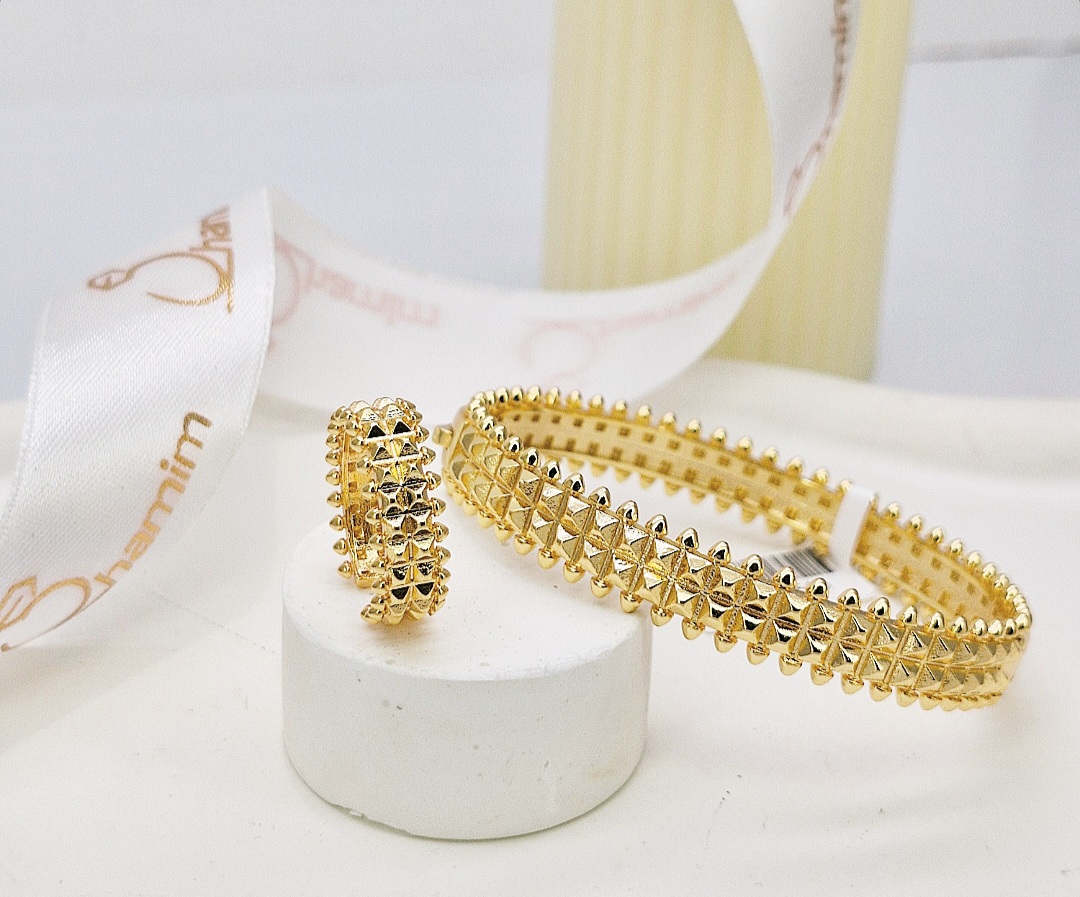 ست دستبند و انگشتر ژوپینگ زنانه؛ طرح معماری طلایی برجسته – مدل ساختار طلایی دوگانه
